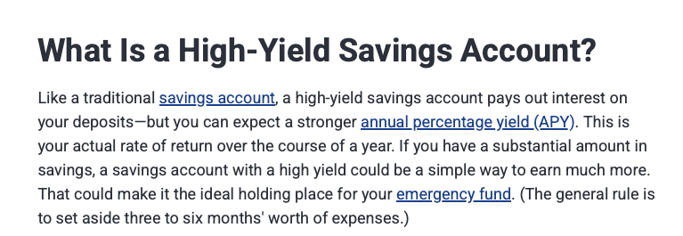 Here’s a real-world example of a chunk from a blog that clearly explains what a high-yield savings account is: