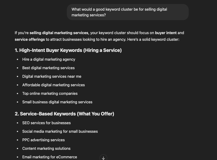 Further refining the prompts like this will help you land on the picture-perfect keyword clusters for your content.
