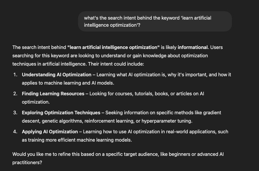 Using AI tools to understand the search intent behind keywords