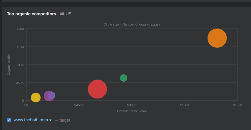 Here, you’ll get to see where your website lies in relation to your top competitors on this chart.