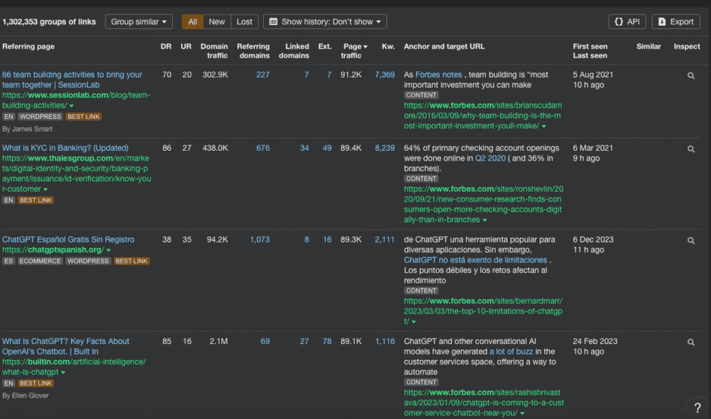 Ahrefs’ Backlinks report is great for understanding competitors’ backlink strategies, as you can easily tell if a backlink is from a link insertion, guest post, or business directory. In the example above, most of the backlinks are from journalists quoting Forbes articles and referencing their statistics, meaning these links were most certainly built naturally. What’s that? Natural links are backlinks that you built without any intervention on your part. In other words, another website chose to link to your content because they found it relevant and valuable, not because you sent them an outreach email.Prioritizing prospects and backlink types