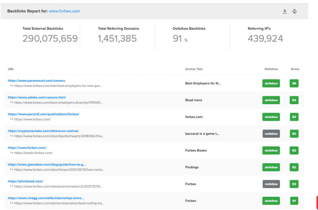 As an example, here’s what some of Forbes.com’s backlinks look like: