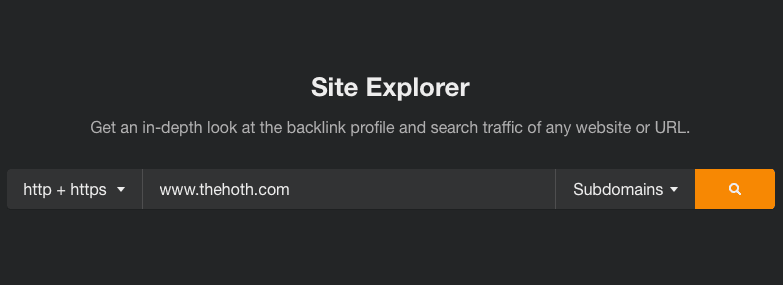 If you have a paid subscription to Ahrefs (which comes in handy for countless SEO tasks), you can use it to quickly pinpoint your main competitors. Here’s how to do it. First, sign in to your account and select the Site Explorer tool. Next, enter your domain and hit the Search button.