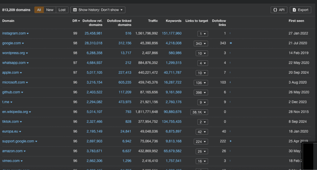 On Google, it’s more powerful to have three backlinks from different referring domains than it is to have three backlinks from the same domain, as their impact begins to diminish after a while. That’s why it’s worth checking this report to see how many referring domains you can gain from analyzing a competitor’s profile.