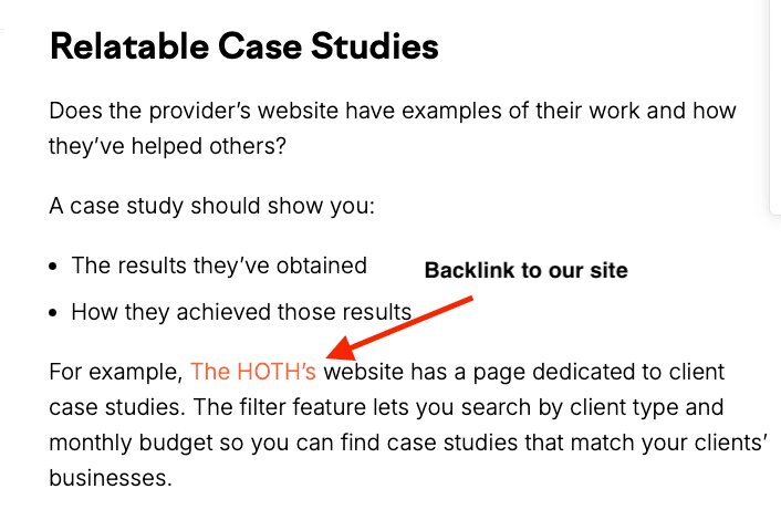 They chose to link to our case study page to exemplify what strong case studies look like (we have an entire page dedicated to our success stories).