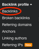 From the Overview, navigate to the Backlinks report on the left-hand sidebar.