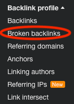 Finding and fixing broken backlinks is a bit more challenging than working with broken internal and external links. This is because your backlinks appear on other websites, and you won’t have access to their internal data under normal circumstances. Once again, Ahrefs is the perfect tool for finding broken backlinks. Here’s how to do it. Pull up Site Explorer and enter your domain. On the left-hand sidebar, go to Backlink profile > Broken backlinks.