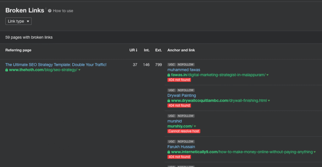 Voila, this will bring up a report containing all the broken backlinks that point to your website.