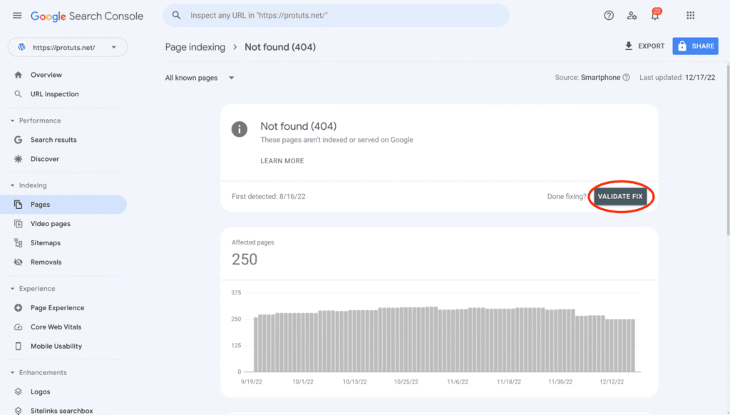 Once you’ve resolved the issue, you can click the Validate Fix button to let Google know that the problem is fixed.