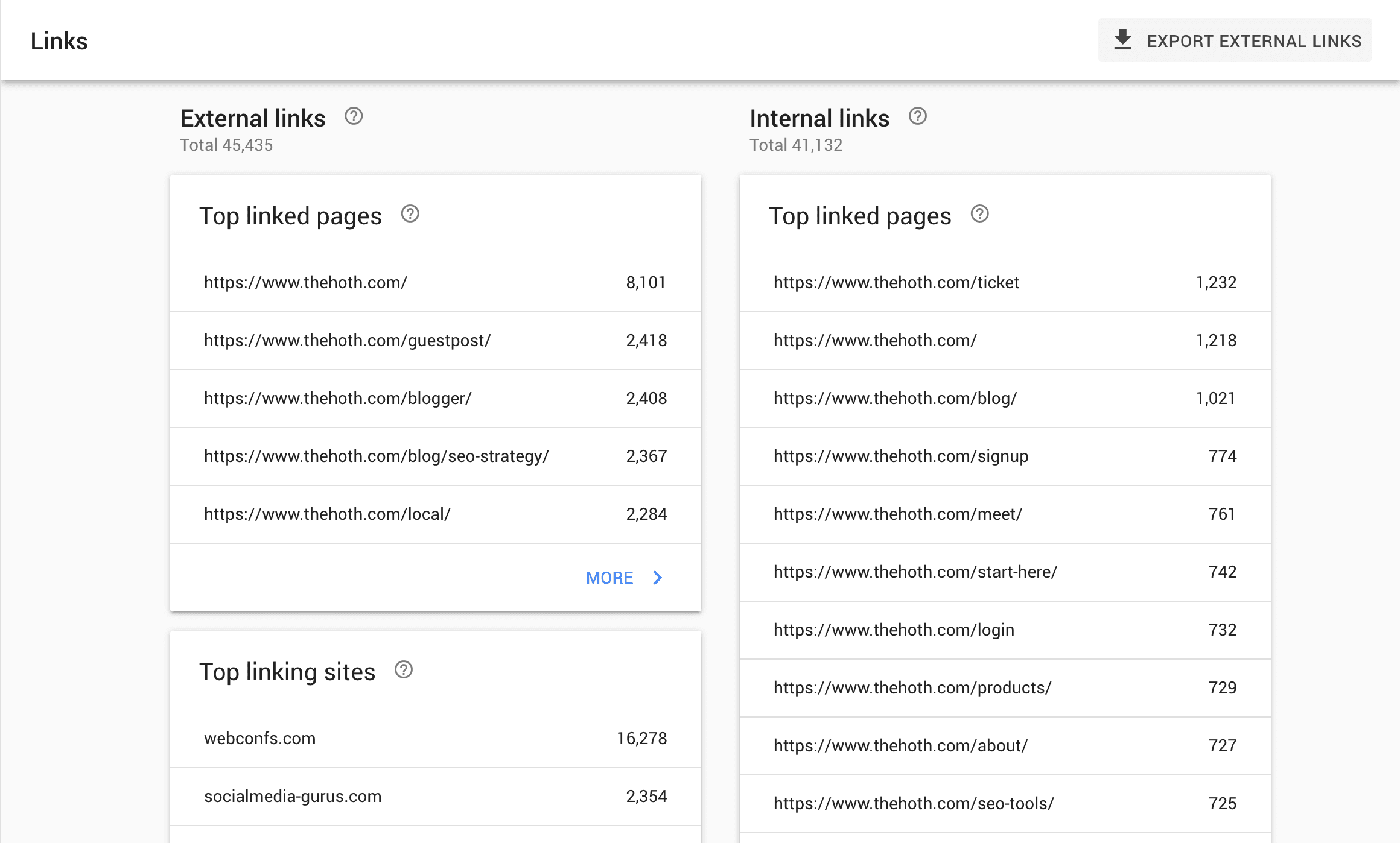 This report will give you even more insight into your top-linked pages, which domains link to you, and supplement the data you get through Google Analytics.
