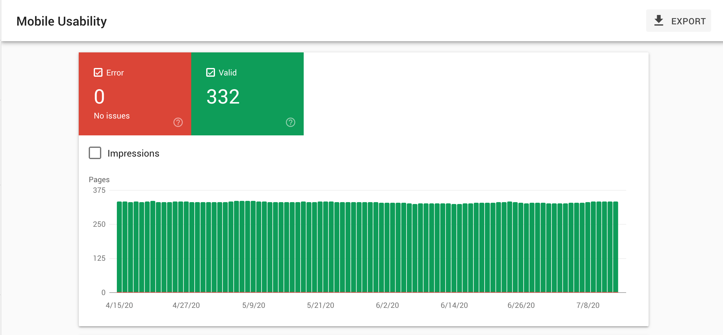Fairly self-explanatory, this section of Search Console will show you with pages on your site are valid, aka mobile-friendly, or rendering an error, aka not mobile-friendly. Now that there's mobile-first indexing, you'll want to pay close attention to this report.