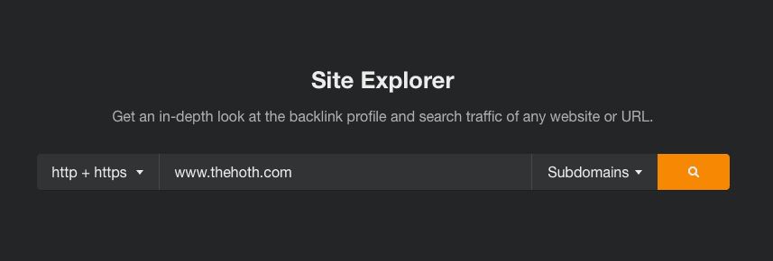 Here’s how to grab all your backlink data and export it as a CSV file for further analysis. First, log in to Ahrefs and navigate to the Site Explorer tool (located in the navigation bar at the very top of the page):