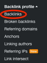 This will take you to the general overview of your site’s SEO statistics, but we want to see backlink data in particular. To do so, navigate to Backlink profile on the left-hand sidebar, and select Backlinks: