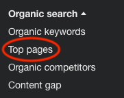 3. Click on the Organic Search tab in the left-hand menu to dive deeper into their organic keyword data. 4. In the Organic Search section, click on Top Pages. This will show you the pages on your competitor’s site that get the most traffic. By analyzing these pages, you can see which keywords are driving traffic to them.
