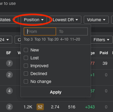 6. Use the position filter to see keywords where your competitor ranks in the top positions (1-10). These are high-value keywords.