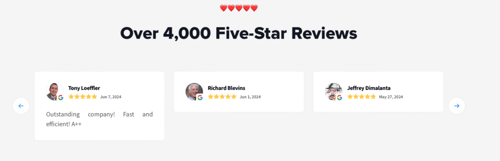 ✔️Customer reviews: Display positive feedback from review sites as text snippets or embedded widgets. We actually do this on our website by embedding Google reviews: