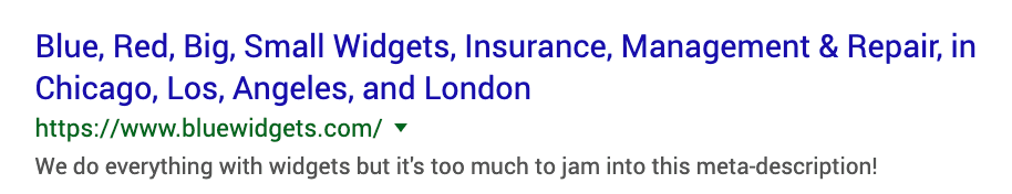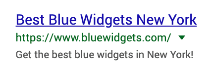 Most businesses start out only offering a handful of products, and then gradually expand their lineup as they scale their operations. What does this have to do with optimizing your homepage? It’s relevant because most new websites will try to rank their homepages for keywords closely related to their flagship products and services. This means that when they eventually expand, they try to cram a ton of new keywords into their homepage, which causes a huge mess. Here’s an example of what we’re talking about. Let’s say that you start a new business that sells blue widgets in New York. Since you only sell one product, you optimize your homepage for it: