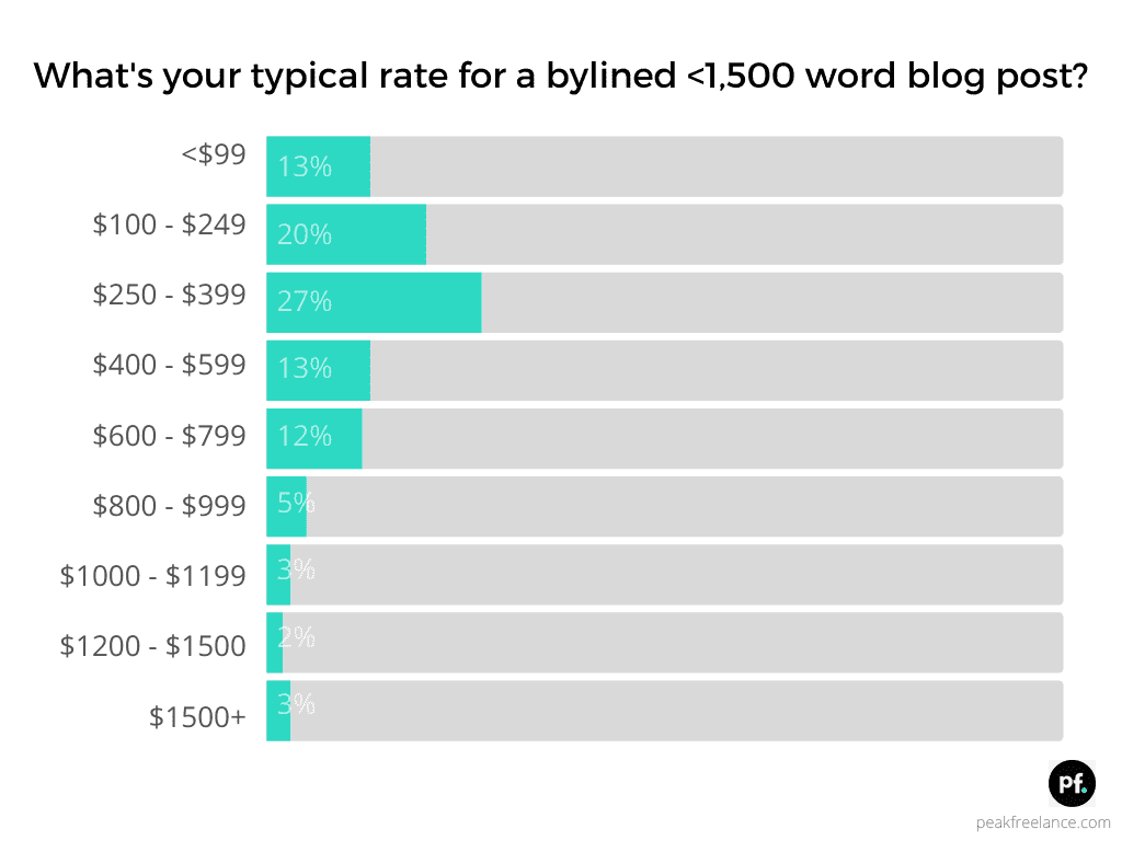 According to the survey, the average freelance copywriter charges $350 -$399 for a 1,500 word blog post.