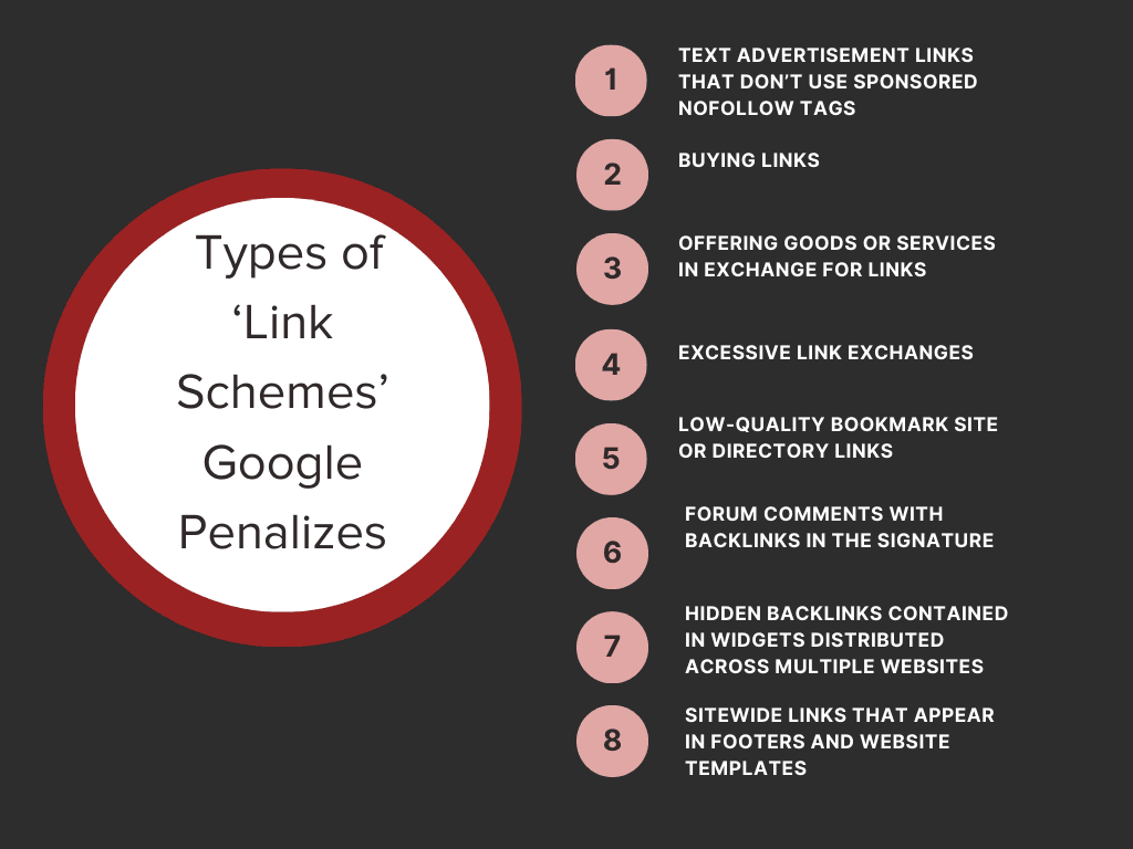 Here’s an overview of the types of ‘link schemes’ Google penalizes websites for: