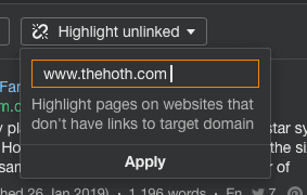 After you hit the Search button, there’s still one step left. You need to enter your website’s URL into the Highlight Unlinked filter so that the results will display websites that mentioned your brand but didn’t link back to your site.