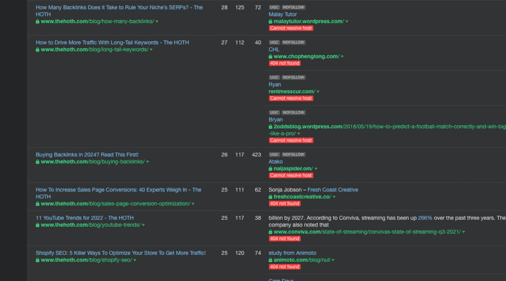 First, we’ll explore a tactic that’s been around for a while but still kicks butt, and that’s fixing broken links on other websites. However, the broken links you fix must come from relevant websites or the backlinks you build won’t impact your rankings. It’s normal for links to break over long periods of time, and there are many reasons for this. It could be that the site owner recently changed their URL structure and forgot to add redirects to the old URLs. Or they could have recently migrated to a new CMS, which is a notorious cause for broken links. Regardless of the reasons why, most websites have at least a few broken links. The good news is you can perform a public service and benefit your SEO by:- Pointing out broken links to site owners