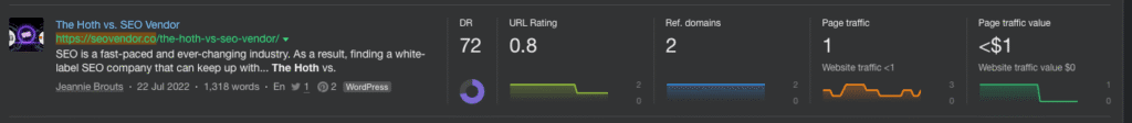 Next, the domain giving you a backlink must have authority, which refers to the ‘weight’ or trust given to a page in relation to the other pages trying to rank for the same keyword. The more authority your website has, the easier it will be to outrank your competitors. In the SEO world, there are a few ways to measure the amount of authority a domain has on search engines. The two most popular metrics are Moz’s Domain Authority (DA) and Ahrefs’ Domain Rating (DR). While they’re both third-party metrics (not from Google), they’re still great ways to measure the ‘ranking power’ of a domain before pursuing a backlink from it. The higher the authority score, the more likely a domain is to appear in Google’s search results. Both DA and DR scores are measured on a scale of 1 - 100, with scores of 100 being the most authoritative. For us, we like to check a domain’s DA and DR before we make the decision to pursue a backlink. This is because there are slight differences between the two metrics, which are:- Domain Rating strictly looks at a website’s backlink profile. If they have a diverse profile with plenty of strong backlinks, they’ll have a good DR score.