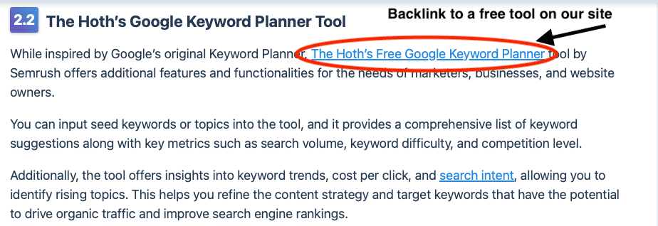 As you can see, our free keyword planner tool scored a spot on their list, and they included a backlink to it as a resource for their readers.