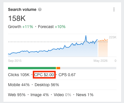 Ranking #1 for a keyword organically means you don’t have to pay a keyword’s CPC, like this one, for example: