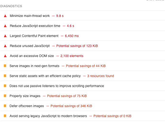 If you scroll down to Diagnose Performance Issues, you’ll get to see a full report containing your website’s: