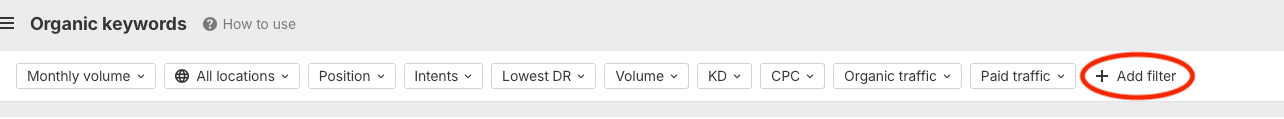 Once you’ve pulled up the report, check the Filters toolbar at the top and hit Add filter:
