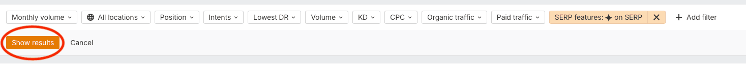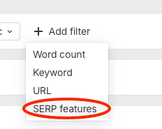 This will bring up a drop-down menu that contains SERP Features: