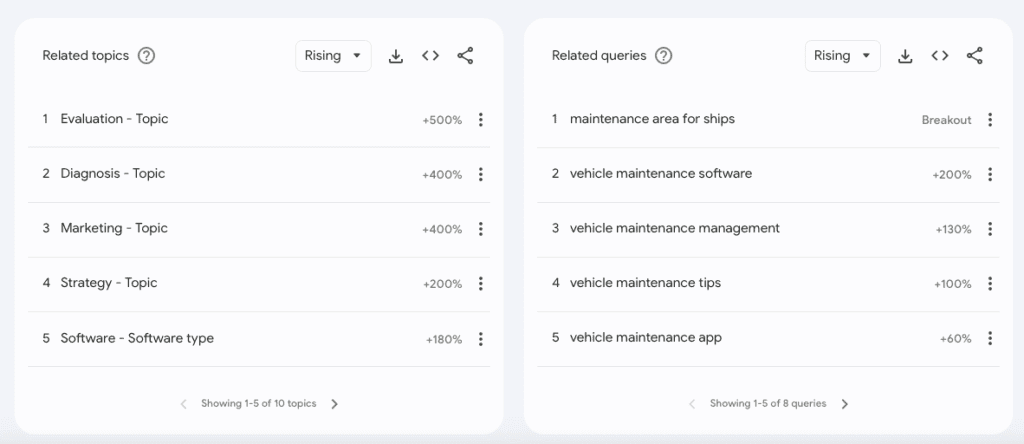 - Trend discovery platforms like Exploding Topics and Google Trends can help you identify which topics and queries are taking off (like this example for vehicle maintenance):
