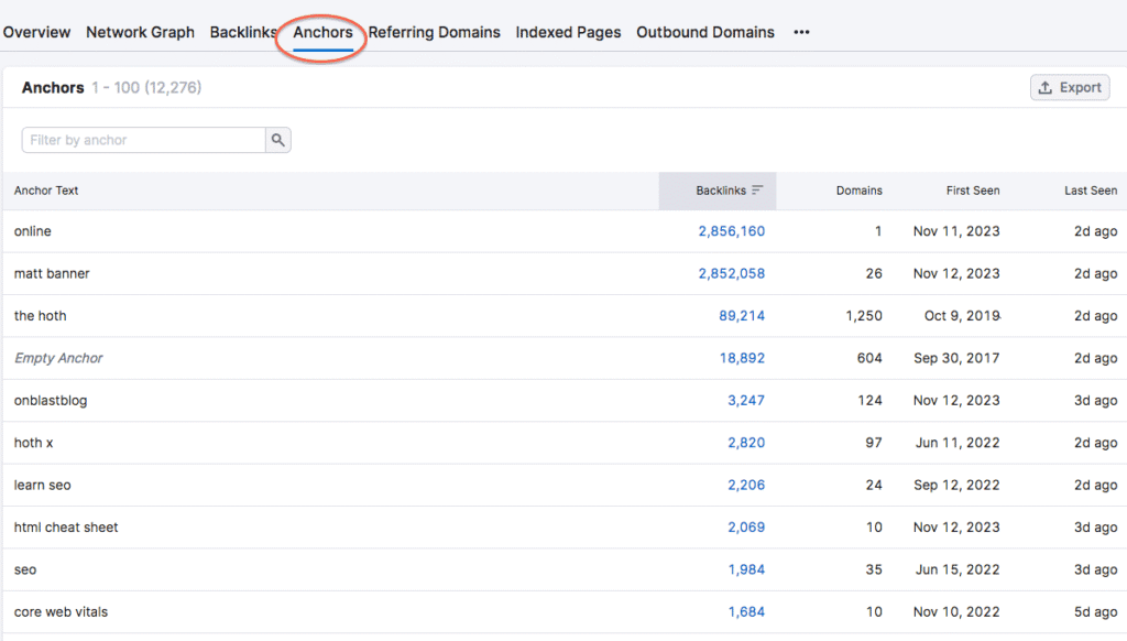 Here, you’ll be able to view a breakdown of the different types of anchor text your backlinks have, which will help you determine if you’re using too much of one type.