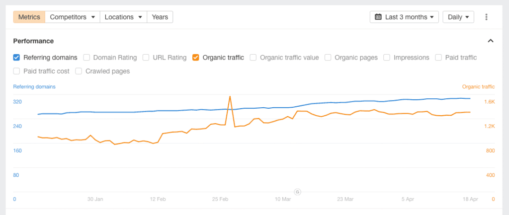 They also saw a major increase in their Domain Rating, which represents how trusted their domain is by Google, something that’s essential for top rankings.