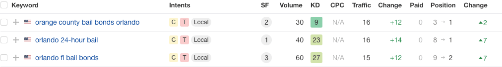 As mentioned before, they’re now ranking in the #1 organic position for crucial money-making keywords related to bail bonds in Orlando.
