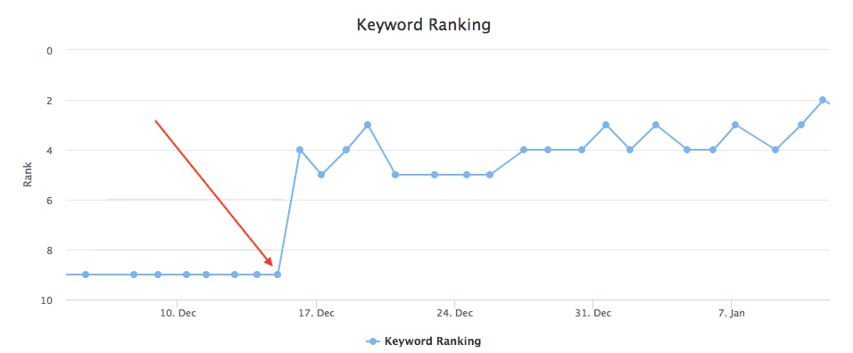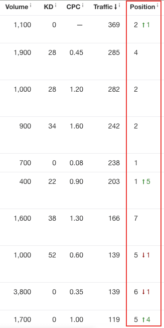After targeting this site’s easy win key terms, we’ve bumped many of them to page 1. The top 10 keywords are currently all ranking on page 1: