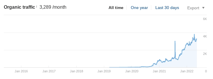 Their traffic grew steadily over the fall of 2020 and into 2021 but check out what happened in July 2021. They exploded from about 1,000 to 3,000 visitors.