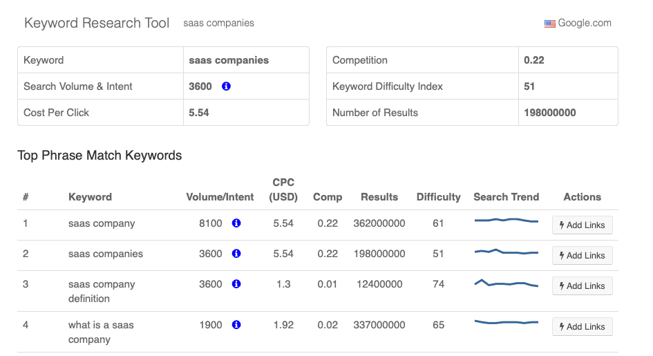Also, according to our free keyword planner, the keyword ‘saas company’ receives over 8,000 searches per month on Google, with related terms having similar numbers: