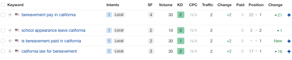 For instance, local keywords like ‘bereavement pay in California’ are central to their business. Users looking up these types of key phrases on search engines are clearly looking for employment attorneys, which is why it’s crucial to rank for them.