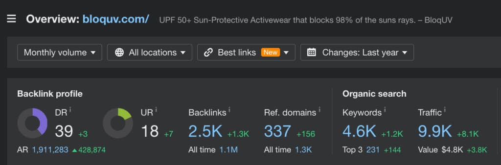 Link-building is our specialty, and we were able to grow BloqUV’s links from just over a thousand to 2.5k, and our efforts are still bearing fruit.