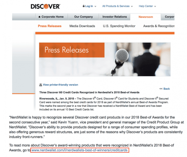 In return, some of these sites (including Discover) also linked back to NerdWallet.