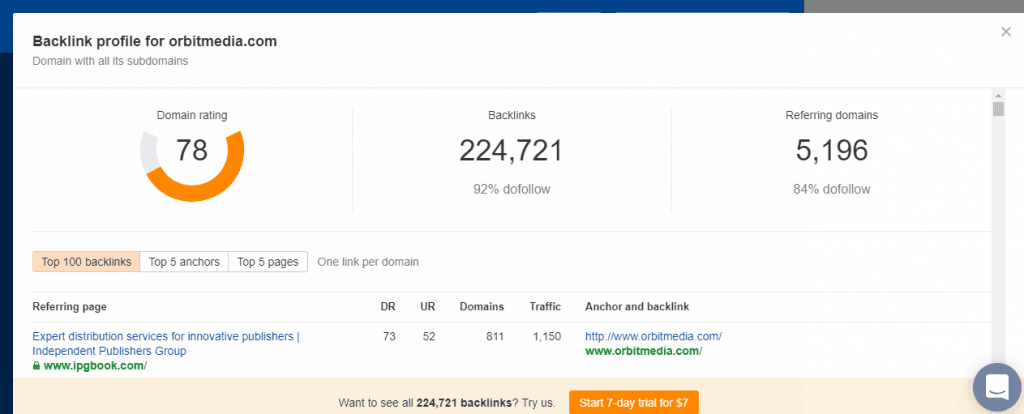 According to Ahrefs, Orbit Media has over 220,000 backlinks from over 5,000 unique domains, which is more than 3x the number of links than the closest competitor.