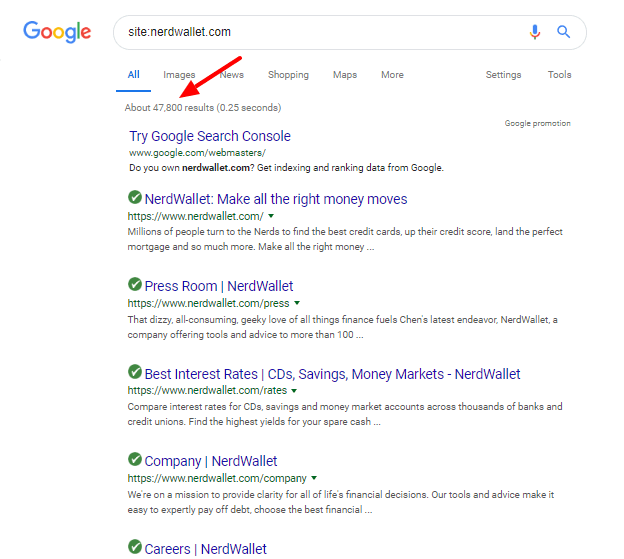 NerdWallet grew its valuation to over $500 million using a similar approach as Hubspot by beating out competitors like Bankrate, Lending Tree, and The Motley Fool. According to AHrefs, the site ranks for over 3.1 million keyword phrases and a quick search shows that the site has over 47,000 pages indexed in Google.
